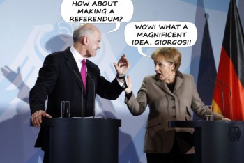 Το δημοψήφισμα που ανακοινώθηκε προχθές και στο οποίο αναφερόμαστε, αφορά τη συμφωνία της 26ης Οκτωβρίου και όχι τη συμμετοχή ή μη της Ελλάδας στο Ευρώ – αφού ούτε μπορεί να εκδιωχθεί από την Ευρωζώνη, αλλά ούτε και να την εγκαταλείψει μόνη της (δεν προβλέπεται από τις ευρω-συμβάσεις).