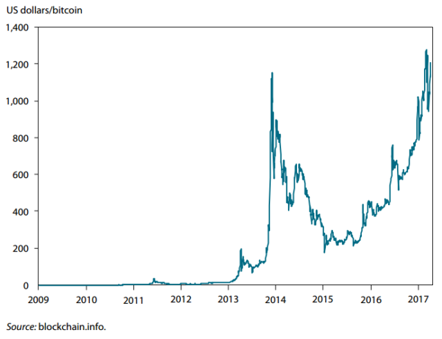 Περαιτέρω, τέτοιου είδους διακυμάνσεις θα ήταν καταστροφικές για ένα πραγματικό χρήμα – αφού η τεράστια άνοδος της αξίας του το 2013, καθώς επίσης ξανά το 2015, θα έμοιαζε με αυτά που συμβαίνουν κατά τη διάρκεια ενός καταστροφικού αποπληθωρισμού – πολύ χειρότερου από τη Μεγάλη Ύφεση του 1930.