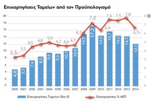 Εν προκειμένω, οι επιχορηγήσεις των ταμείων από το δημόσιο το 2014 ήταν 12,1 δις € ή στο 6,7% του ΑΕΠ και στο 24% περίπου των φορολογικών εσόδων ύψους 51 δις € – γεγονός που οφείλεται βέβαια σε μεγάλο βαθμό στην ανεργία, αφού λείπουν μεγάλα ποσά από την πλευρά των ασφαλιστικών εισφορών.
