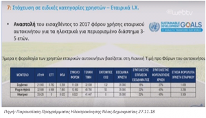 | 7. Στόχευση ειδικών Κατηγοριών χρηστών (κίνητρα) – Εταιρικά ΙΧ: Αναστολή φόρου χρήσης για 3-5 χρόνια |
