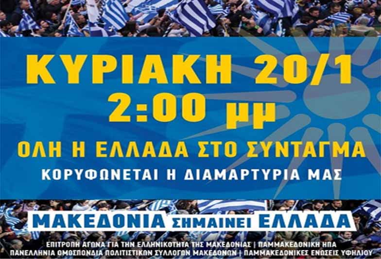 Αυτό που έχει σημασία είναι να είμαστε όλοι την Κυριακή στο Σύνταγμα, στις δύο το μεσημέρι, με συλλογικό αίτημα μας τη μη παράδοση του ονόματος της Μακεδονίας με κανέναν τρόπο και με καμία συμφωνία – έχοντας υπ’ όψιν μας πως αυτή η κυβέρνηση μας θεώρησε αρκετά έξυπνους για να την ψηφίσουμε, αλλά εντελώς ηλιθίους για να αποφασίσουμε σε σχέση με το νούμερο ένα εθνικό μας ζήτημα σήμερα, με τη διεξαγωγή δημοψηφίσματος.