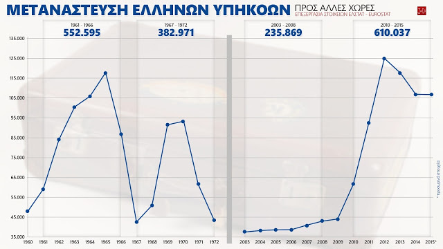 Είναι πράγματι πολύ δύσκολο, εκτός εάν οι ίδιοι οι νέοι καταλάβουν πως είναι η σειρά τους να αγωνιστούν για την πατρίδα τους – όπως πολλοί από τους προγόνους τους στα χιλιάδες χρόνια που έζησαν Έλληνες σε αυτήν τη χώρα. Ότι μπορούν να το κάνουν έχοντας αποκτήσει την καλύτερη δυνατή εκπαίδευση ενώ, εάν επιλέξουν τη φυγή, όπως οι 700.000 που εγκατέλειψαν ήδη την Ελλάδα (γράφημα), η πατρίδα τους θα πάψει κάποια στιγμή να υπάρχει – αφού δεν είναι δυνατόν να περιμένουν να διασωθεί από τους ηλικιωμένους, από αυτούς που τη χρεοκόπησαν ή από τους λίγους νέους που τελικά θα παραμείνουν.