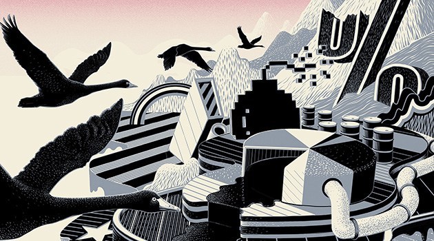 Για τους υποστηρικτές της νεοφιλελεύθερης οικονομίας, ο μαύρος κύκνος ήταν η Enron, η χρεοκοπία της Lehman Brothers και η χρηματοπιστωτική κρίση του 2008 – ενώ για τις Η.Π.Α. γεωπολιτικά η ηγεμονική επέμβαση της Ρωσίας στη Μέση Ανατολή. Για την Ευρωζώνη η κρίση χρέους της Ελλάδας, η οποία έφερε στην επιφάνεια τα τεράστια ελαττώματα του κοινού νομίσματος – για την Ελλάδα η μεγαλοπρεπής κυβίστηση της αριστεράς το 2015 και το κλείσιμο των τραπεζών, ενώ για τη γαλοπούλα η παραμονή των Χριστουγέννων.