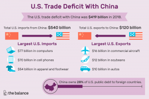 Πολλές από τις εξαγωγές της Κίνας προς τις Η.Π.Α. είναι προϊόντα αμερικανικών εταιρειών που τα παράγουν εκεί (γράφημα) – οπότε πρόκειται ουσιαστικά για πλασματικά κινεζικά αγαθά. Τα κυριότερα προϊόντα εξαγωγής της είναι οι υπολογιστές, ο εξοπλισμός επεξεργασίας δεδομένων, ο ιατρικός εξοπλισμός, τα είδη ένδυσης, τα υφάσματα και ο χάλυβας – όπου η Κίνα είναι ο μεγαλύτερος εξαγωγέας παγκοσμίως. Όσον αφορά τώρα τις εισαγωγές, η Κίνα είναι η δεύτερη μεγαλύτερη στον πλανήτη, με 1,7 τρις $ το 2017 – ενώ οι Η.Π.Α. κατέχουν την πρώτη θέση με 2,3 τρις $.
