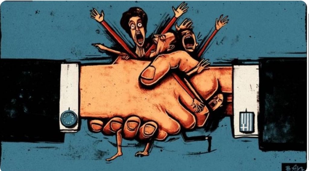 Εάν δεν συμβεί κάτι τέτοιο, θα βιώσουμε σύντομα έναν εργασιακό μεσαίωνα στην Ελλάδα – όπου οι Έλληνες θα μετατραπούν σε φθηνούς και απροστάτευτους εργαζόμενους των ξένων ή, ακόμη χειρότερα, σε εξαθλιωμένους σκλάβους χρέους μίας περιοχής που δεν θα ανήκει πλέον στους ίδιους.
