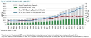Εν προκειμένω, ο όγκος συναλλαγών αυξήθηκε από 20-30 μετρικούς τόνους ετησίως (ΜΤΡΑ) σε περίπου 300, ενώ ο αριθμός των χωρών που εισάγουν ΥΦΑ σε πάνω από 40, μέσα σε μόλις 15 χρόνια – με τον αριθμό όμως των παραγωγών να παραμένει σχεδόν αμετάβλητος, με μεγάλη εξαίρεση τις Η.Π.Α. που εισήλθαν στην αγορά ΥΦΑ το 2016. Περαιτέρω, υπάρχουν δύο τρόποι μεταφοράς του φυσικού αερίου: