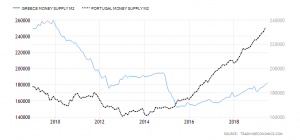 Η βασικότερη πάντως λύση, για να παραχθεί επιτέλους πραγματικός πλούτος στην Ελλάδα και για να μην μετατραπούν οι Έλληνες στα κακοπληρωμένα γκαρσόνια των Ευρωπαίων, συνεχίζει να είναι η επίτευξη μίας δημοσιονομικής συμφωνίας (new deal) με την ΕΕ. Μίας συμφωνίας που να στηρίζεται από μία πολιτικά ελεγχόμενη Τράπεζα της Ελλάδας, καθώς επίσης από ένα συμπληρωματικό ιδιωτικό νόμισμα κατά τα πρότυπα της Ελβετίας ή της Γερμανίας (ανάλυση), συν ένα φορολογικό νόμισμα, όπως τα «mini bots» που ψήφισε η ιταλική Βουλή – με στόχο αφενός μεν την επαρκή ρευστότητα της ελληνικής οικονομίας (γράφημα σύγκρισης με την Πορτογαλία), αφετέρου την εξουδετέρωση των επιθετικών επεμβάσεων της ΕΚΤ, όπως ήταν το παράνομο κλείσιμο των τραπεζών το 2015.