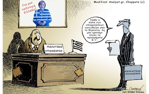 Το γεγονός λοιπόν της απαίτησης πλεονασμάτων από τους δανειστές, χωρίς να αναπτύσσεται η οικονομία της χώρας μας, σημαίνει απλά πως μέσω αυτών ληστεύονται οι Πολίτες και μεταφέρεται η ιδιωτική τους περιουσία στο κράτος – επίσης σε εξευτελιστικές τιμές, μεταξύ άλλων με τη βοήθεια κατασχέσεων και πλειστηριασμών. Στη συνέχεια, από το κράτος η ιδιωτική περιουσία μεταφέρεται στους δανειστές – ενώ σύντομα τα περισσότερα περιουσιακά στοιχεία των Ελλήνων θα ανήκουν σε ξένους.
