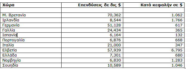 Εν τούτοις, τα τελευταία χρόνια έχει αυξηθεί ο φόβος των Ευρωπαίων, οι οποίοι πλέον θεωρούν πως η Κίνα αποτελεί κίνδυνο για την ΕΕ – συνειδητοποιώντας πως στο οικονομικό πόλεμο που μαίνεται, διαθέτουν πολύ μεγαλύτερες δυνατότητες. Στο γράφημα φαίνονται οι κινεζικές άμεσες επενδύσεις σε ορισμένες χώρες της Ευρώπης – όπου σε σχέση με τις κατά κεφαλήν, ανά κάτοικο δηλαδή, εντυπωσιάζει το μέγεθος τους στην Ελβετία.