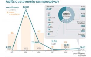 Ειδικότερα, μόνο το Δεκέμβρη εισέβαλλαν στην Ελλάδα, κυρίως σε Λέσβο, Σάμο, Χίο, Λέρο και Κω 6.800 αιτούντες άσυλο – ενώ στο ίδιο χρονικό διάστημα μεταφέρθηκαν 5.284 άτομα σε κέντρα φιλοξενίας στην ενδοχώρα (πηγή). Το γεγονός αυτό σημαίνει πως η ΝΔ όχι μόνο μεταφέρει το πρόβλημα στο εσωτερικό της χώρας, όπου σύντομα θα βιώσουμε συνθήκες Σουηδίας (άρθρο), αλλά δεν προλαβαίνει καν να αδειάσει τα νησιά – αφού οι εισροές είναι μεγαλύτερες από τις εκροές κατά περίπου 1.300 άτομα που προστίθενται στα ήδη υπάρχοντα.