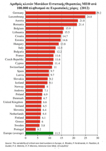 Η Ελλάδα είχε 557 ΜΕΘ πριν μπει στην κρίση του κορονοίου με 100 κλειστές και προστέθηκαν 74 με την εκδήλωση της επιδημίας κατά τον Γ. Τράγκα. Κάτι που θεωρούμε λογικό νούμερο στο μικρό χρονικό διάστημα και τις περιορισμένες προσλήψεις. Αντίθετα το Die Zeit που φαίνεται κάποιο λόγο έχει να παινεύει Ελλάδα λέει 910 ΜΕΘ!! https://gr.euronews.com/2020/04/22/die-zeit-rolos-tsiodra-antimetwpisi-pandimias Οπως και ο Κικίλιας εξάλλου. Το θέμα είναι αν αυτές είναι πραγματικά μόνιμες κλίνες ΜΕΘ ή κατ’όνομα ή κάποιου είδους ΜΑΦ (μονάδα αυξημένης φροντίδας). Αυτό γιατί εκτός από τον εξοπλισμό σημαντική είναι και η εξειδικευμένη στελέχωση που δεν ξέρουμε κατά πόσο είναι «έτοιμη» σε τόσο σύντομο διάστημα,