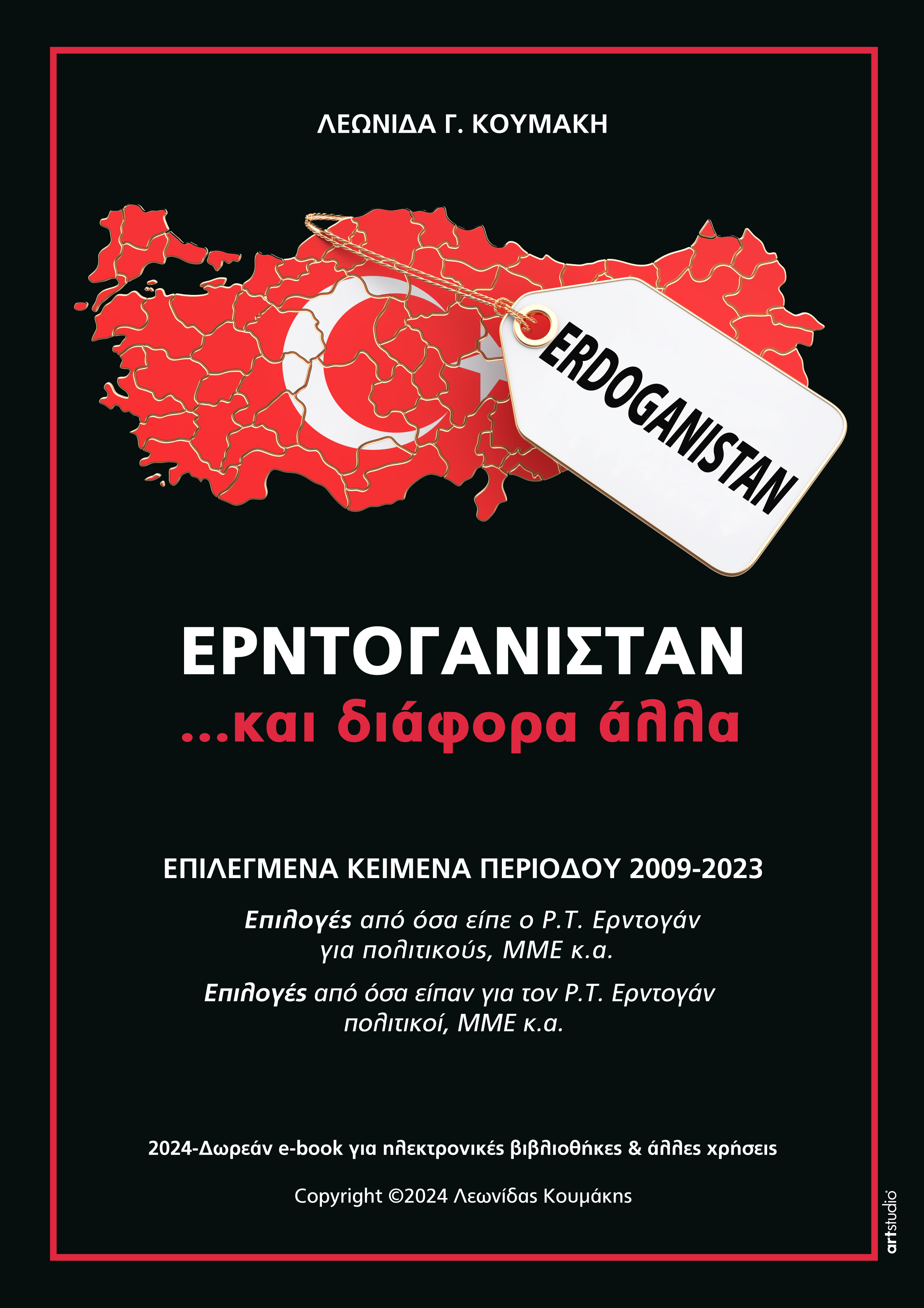 Το νέο ηλεκτρονικό βιβλίο του Λεωνίδα Κουμάκη με τίτλο «ΕΡΝΤΟΓΑΝΙΣΤΑΝ» μόλις κυκλοφόρησε. Περιλαμβάνει 30 επιλεγμένα κείμενα της περιόδου 2009 – 2023, παραπομπές σε πολλά άλλα άρθρα και αναλύσεις, επιλογές από όσα είπαν διάφορες προσωπικότητες και ΜΜΕ για τον Ρ. Τ. Ερντογάν καθώς και επιλογές από όσα είπε ο ίδιος ο Ρ. Τ. Ερντογάν για διάφορες προσωπικότητες, οργανισμούς, κράτη και … επί παντός επιστητού!