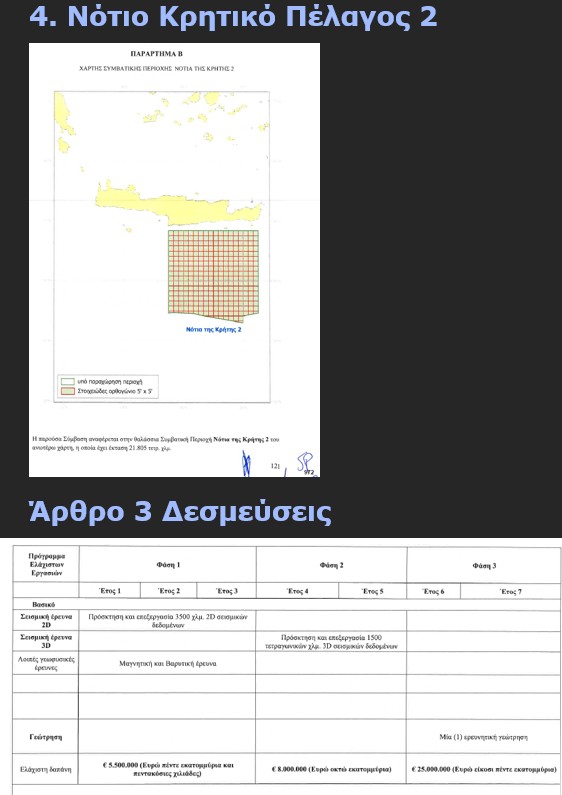 (2) Νότια της Πελοποννήσου, σε μια περιοχή βόρεια αυτής που είχε δοθεί το 2019 στην Exxon-ΕΛΠΕ – της Δυτικής Κρήτης.