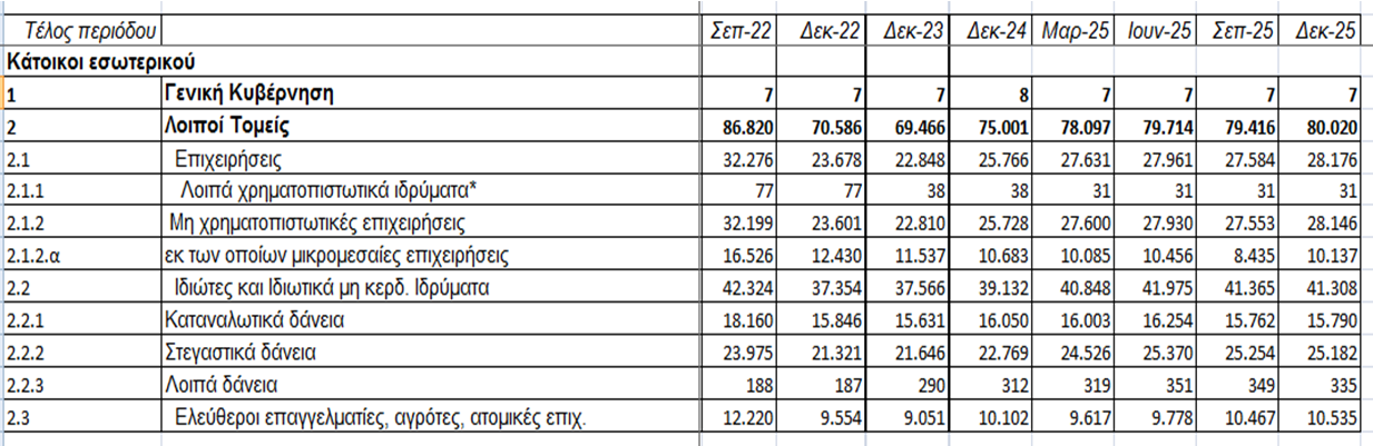 Ειδικά δε, εάν λάβουμε υπόψη τον όγκο του Δεκεμβρίου 2025 στο ύψος πάνω από 80 δις € σημαίνει ότι επανερχόμαστε σε επίπεδα φθινοπώρου 2022, όταν ο όγκος των κόκκινων δανείων βρίσκονταν στα επίπεδα των 86,8 δις €.